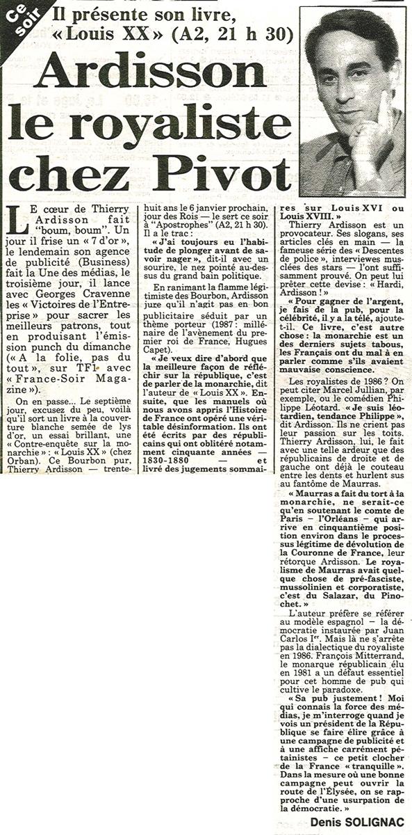 Ardisson le royaliste chez Pivot, Fance Soir