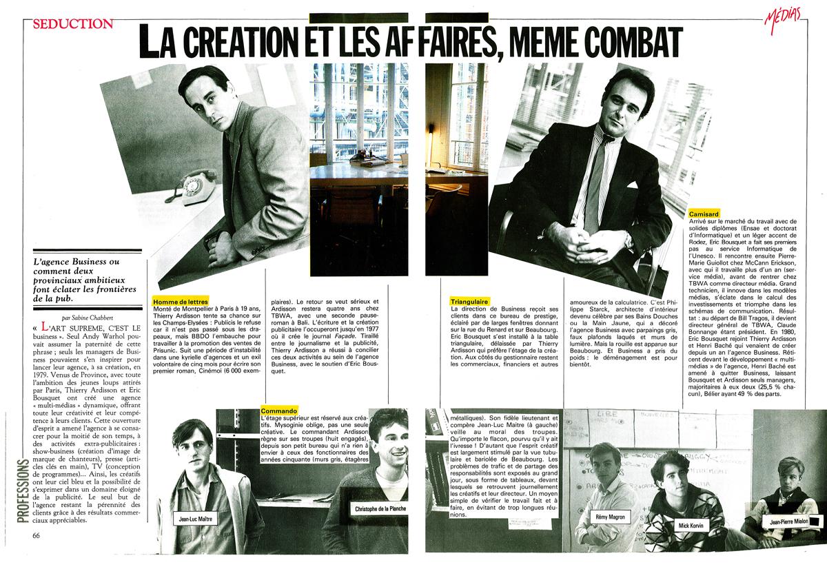 La création et les affaires, même combat, Médias