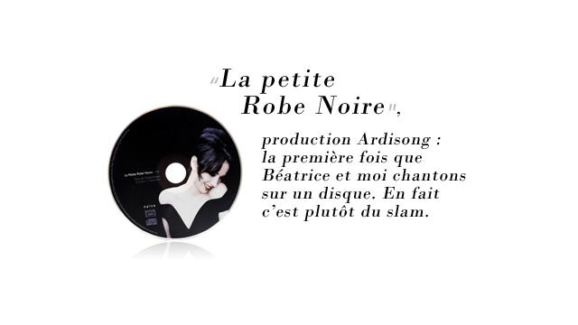 La Petite Robe Noire, production Ardisong : la première fois que Béatrice et moi chantons sur un disque. En fait c'est plutôt du slam.