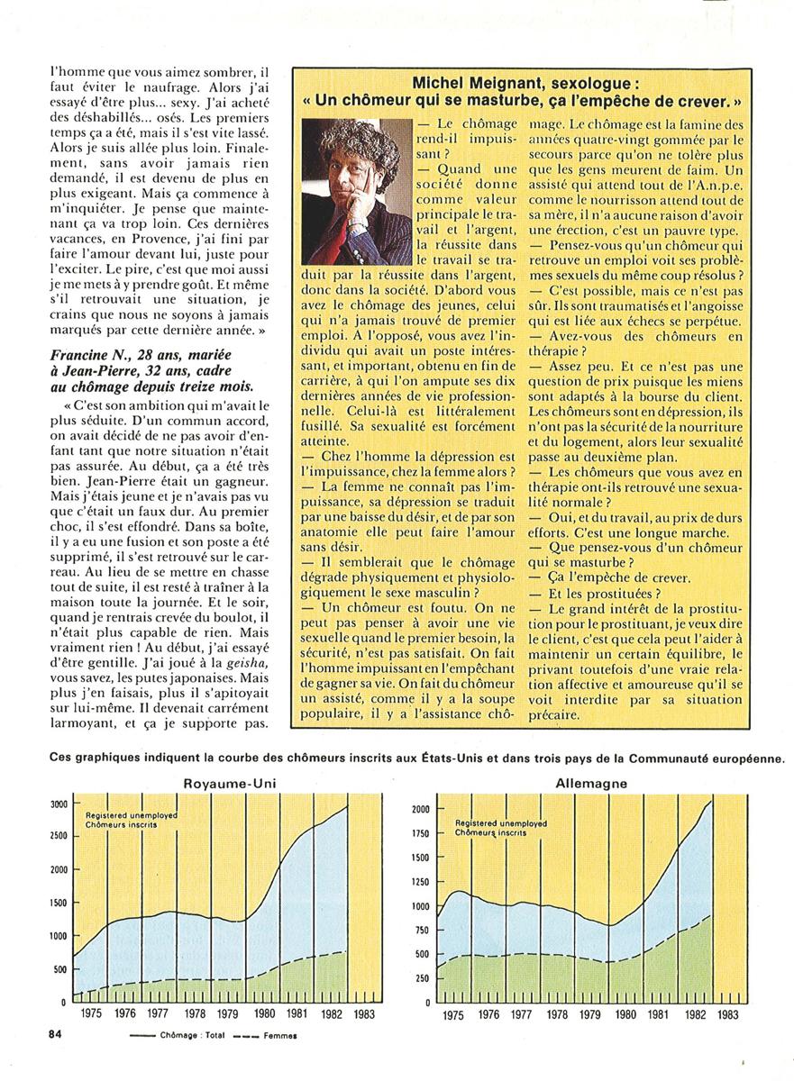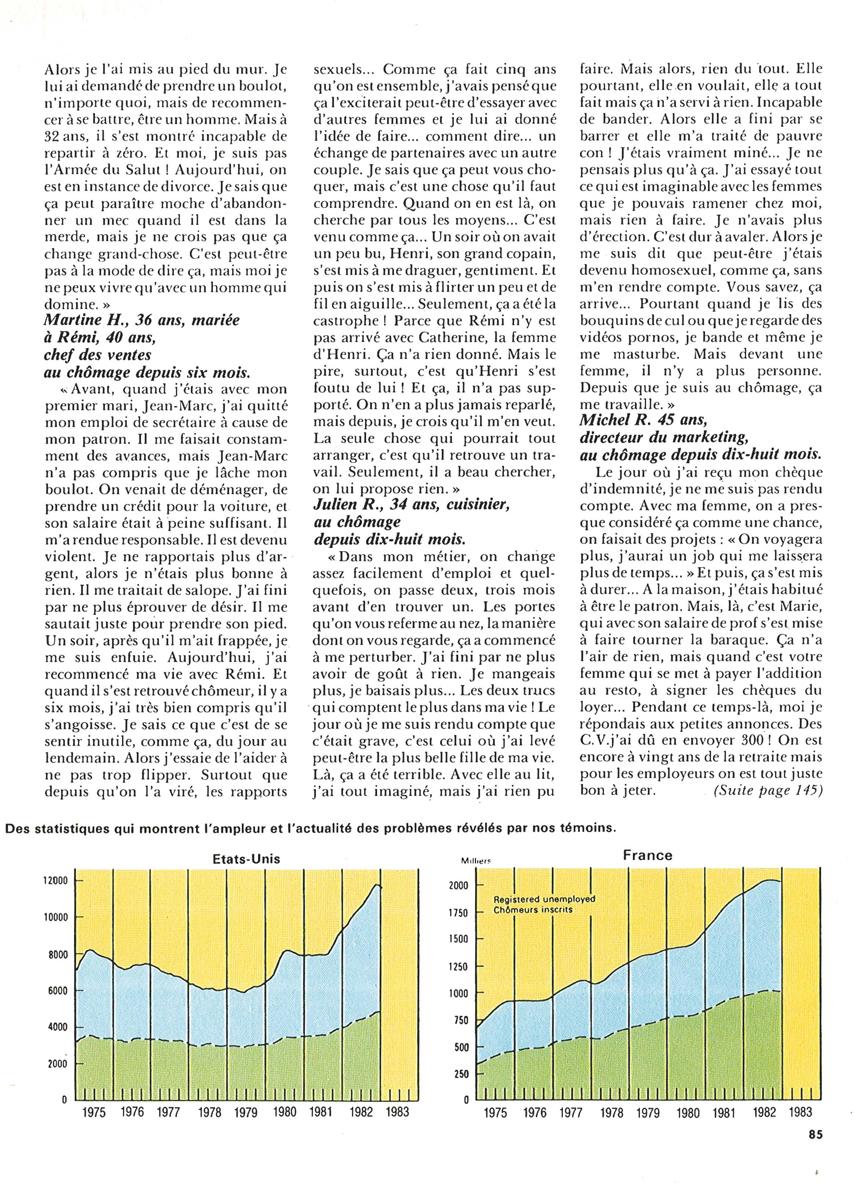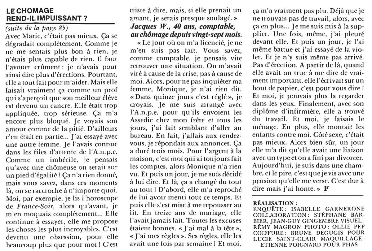 Article sur les difficultés affectives et sexuelles d'un chômeur.
