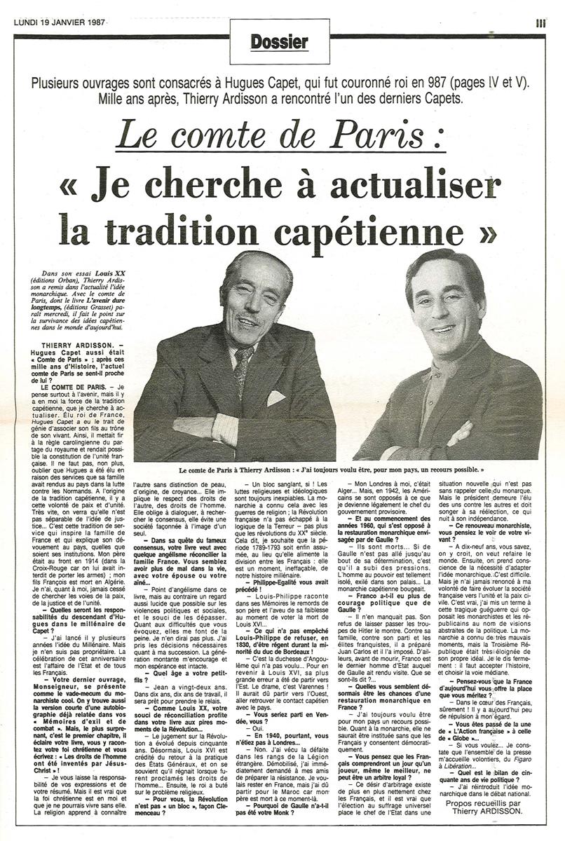 Le comte de Paris, Je cherche à  actualiser la tradition capétienne