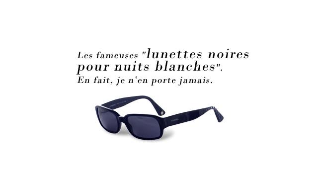 Les fameuses lunettes noires pour nuits blanches. En fait, je n'en porte jamais.