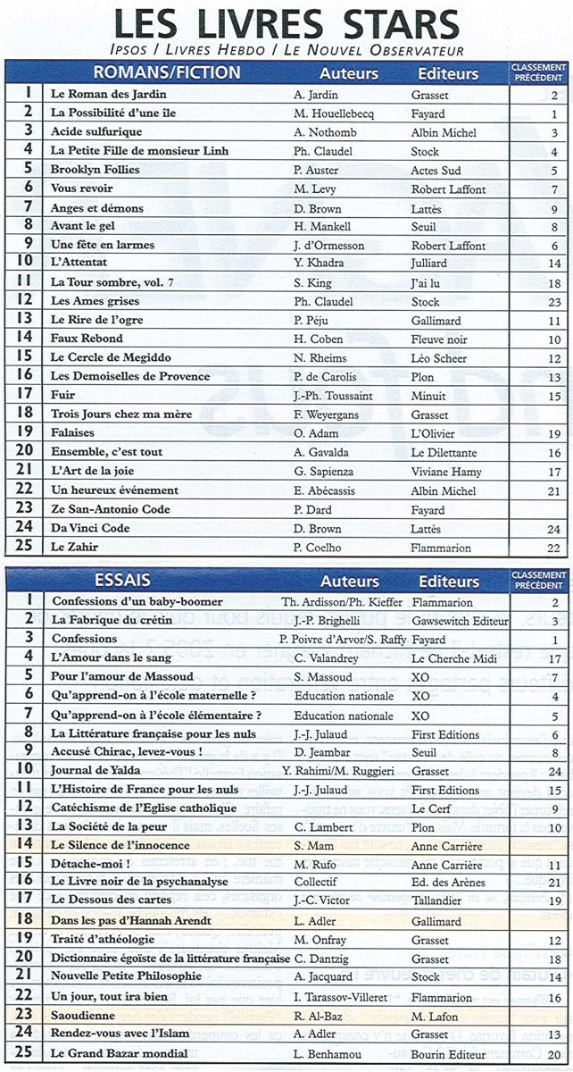 Les Livres Stars, Le Nouvel Observateur