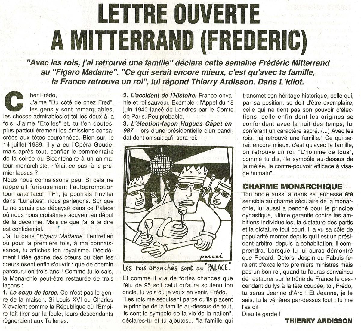 Lettre ouverte à  Mitterand (Frédéric)