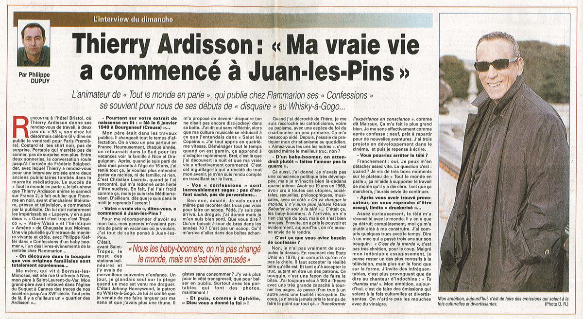 Ma vraie vie a commencé à  Juan les Pins, Nice-Matin