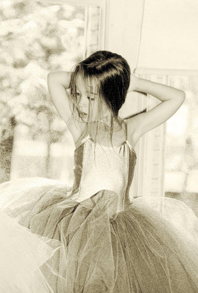 Noir et blanc. Enfant, habillée en danseuse.