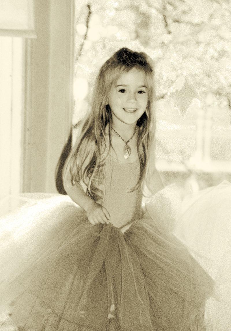 Noir et blanc. Enfant, habillée en danseuse.