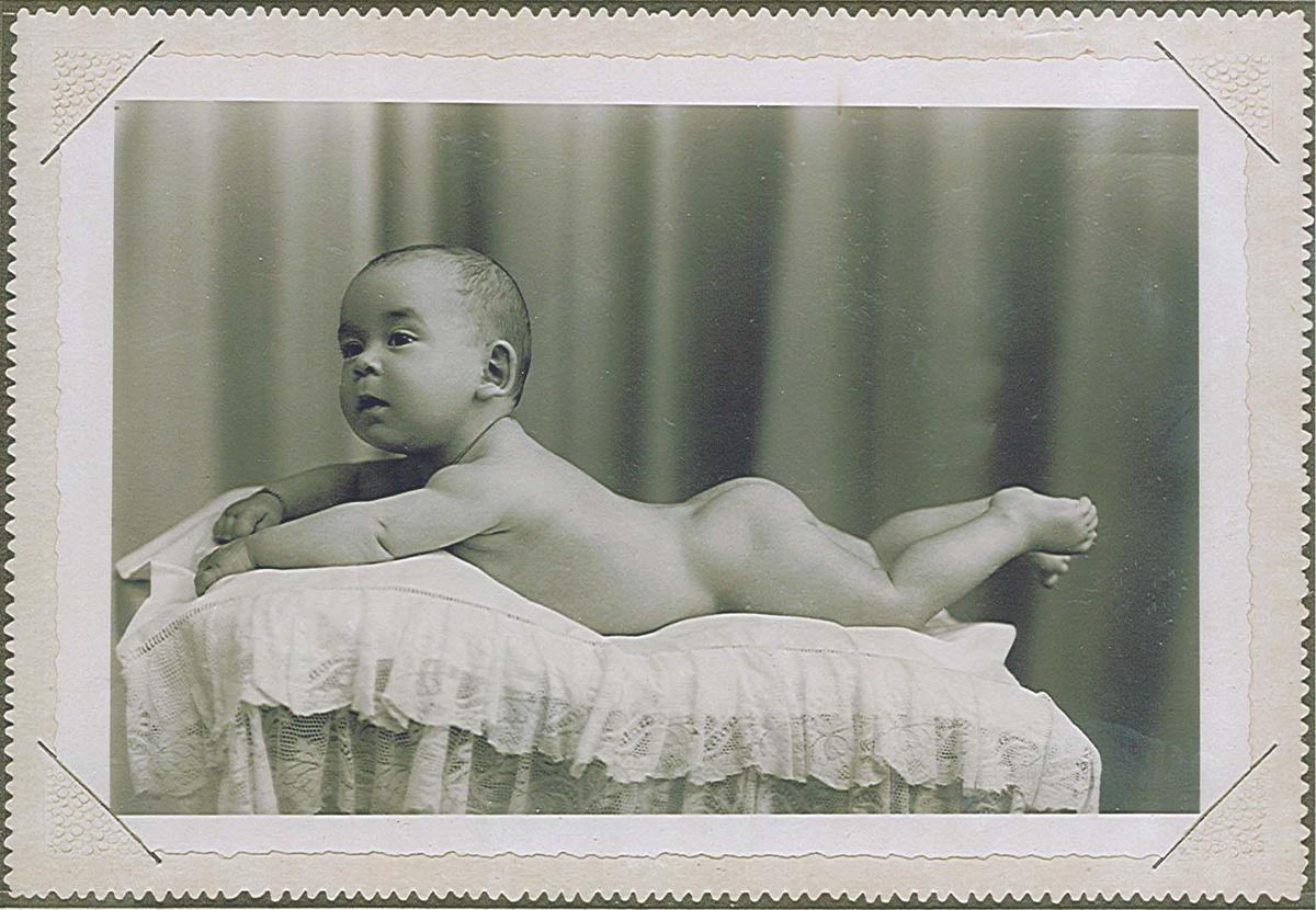 Noir et blanc. Bébé sur un coussin.