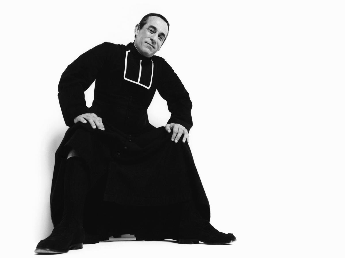 Noir et blanc. Habillé en curé.