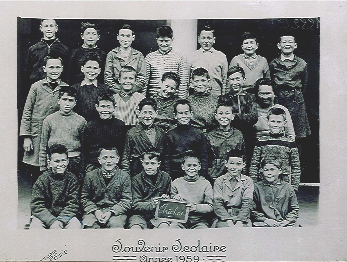 Noir et blanc. Ecolier, sur une photo de classe.