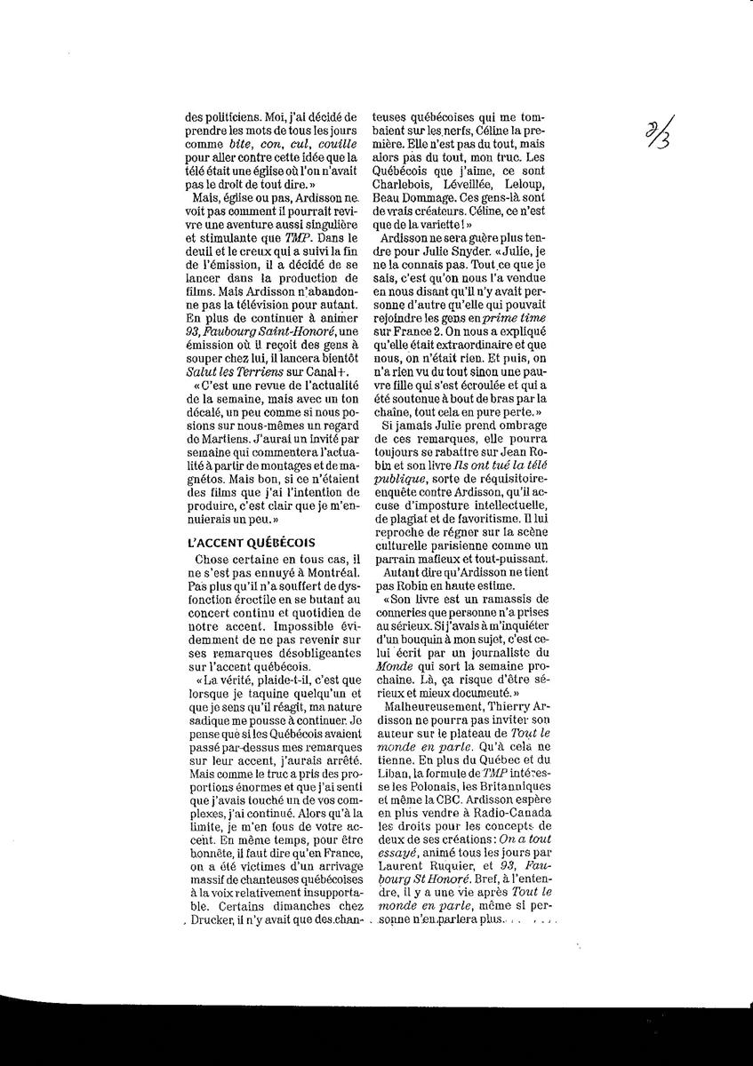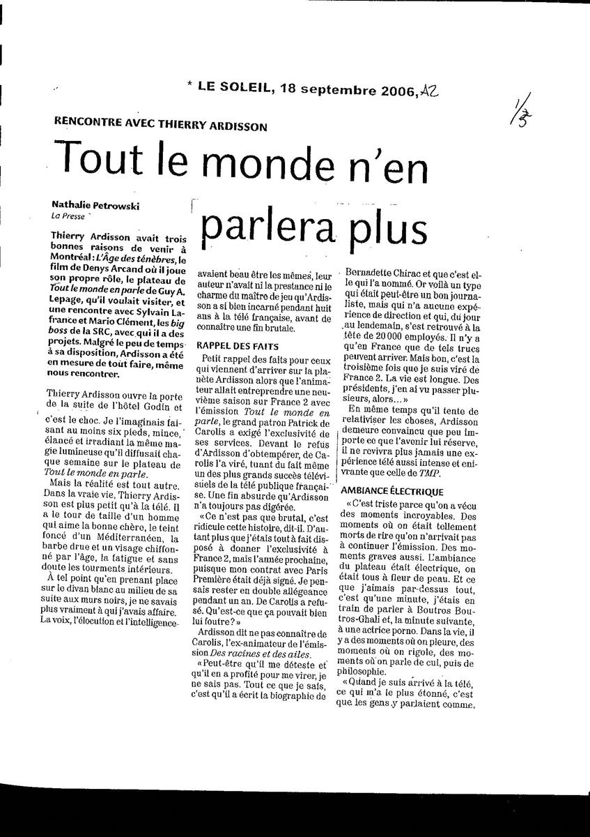 Tout le monde n'en parlera plus, Le Soleil