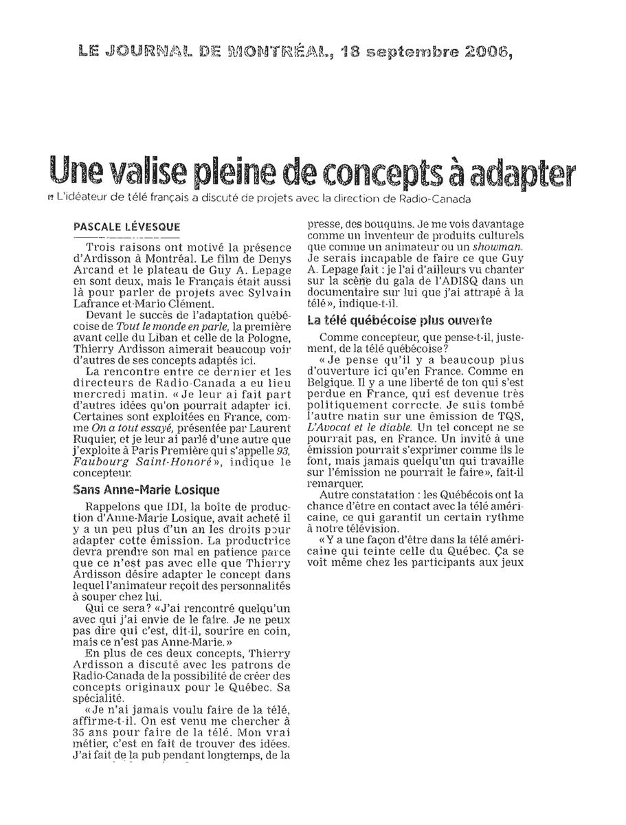 Une valise pleine de concepts à  adapter, Le journal de Monréal