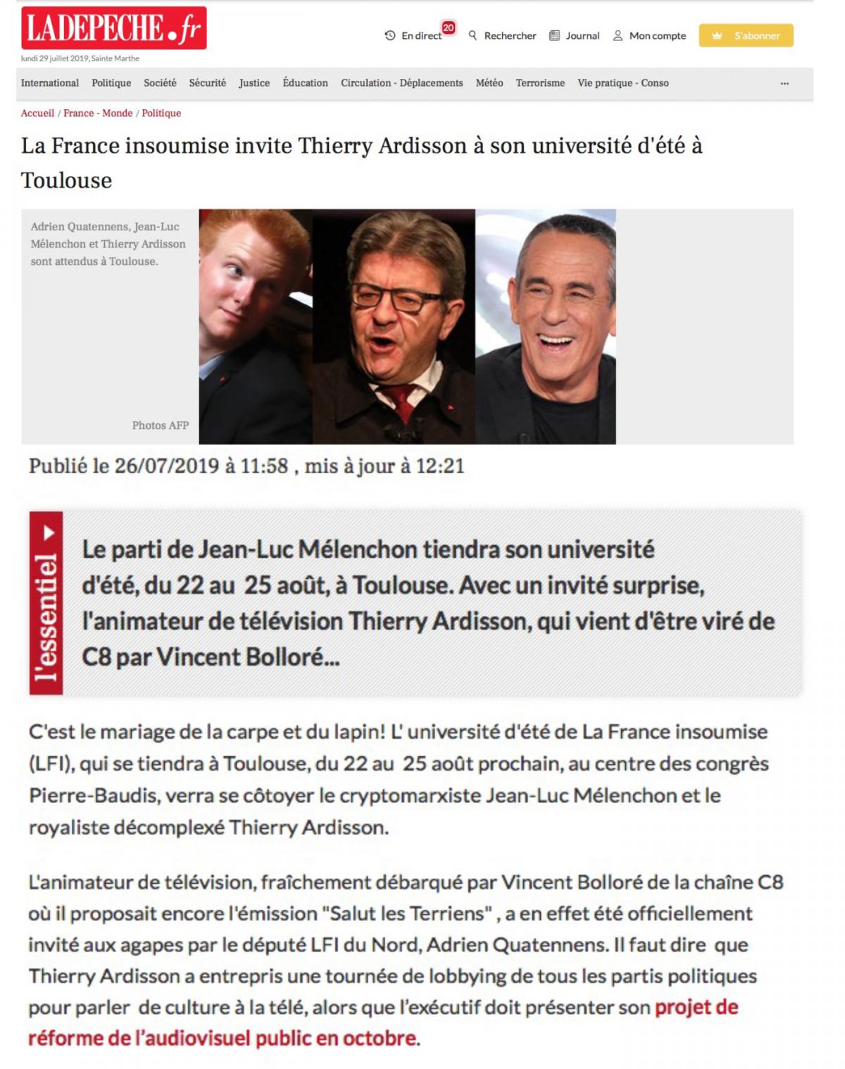 la dépêche : À Toulouse, Thierry Ardisson animateur chez les Insoumis
