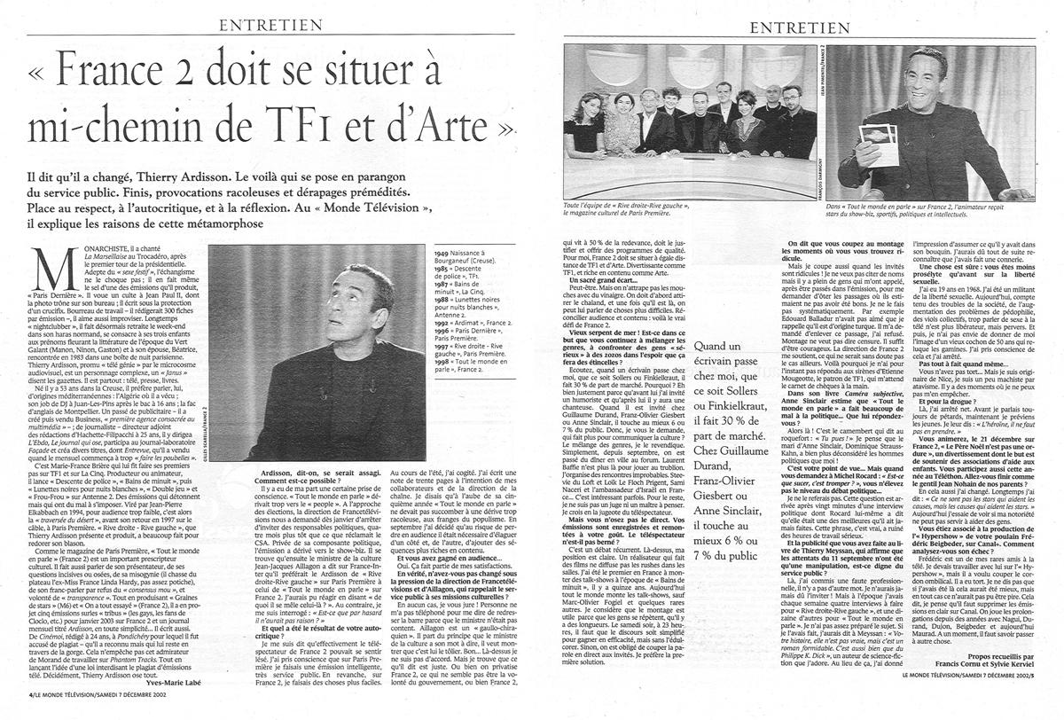 Ardisson a-t-il changé?, Le Monde TV