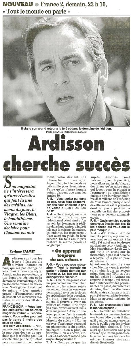 Ardisson cherche succès, France Soir