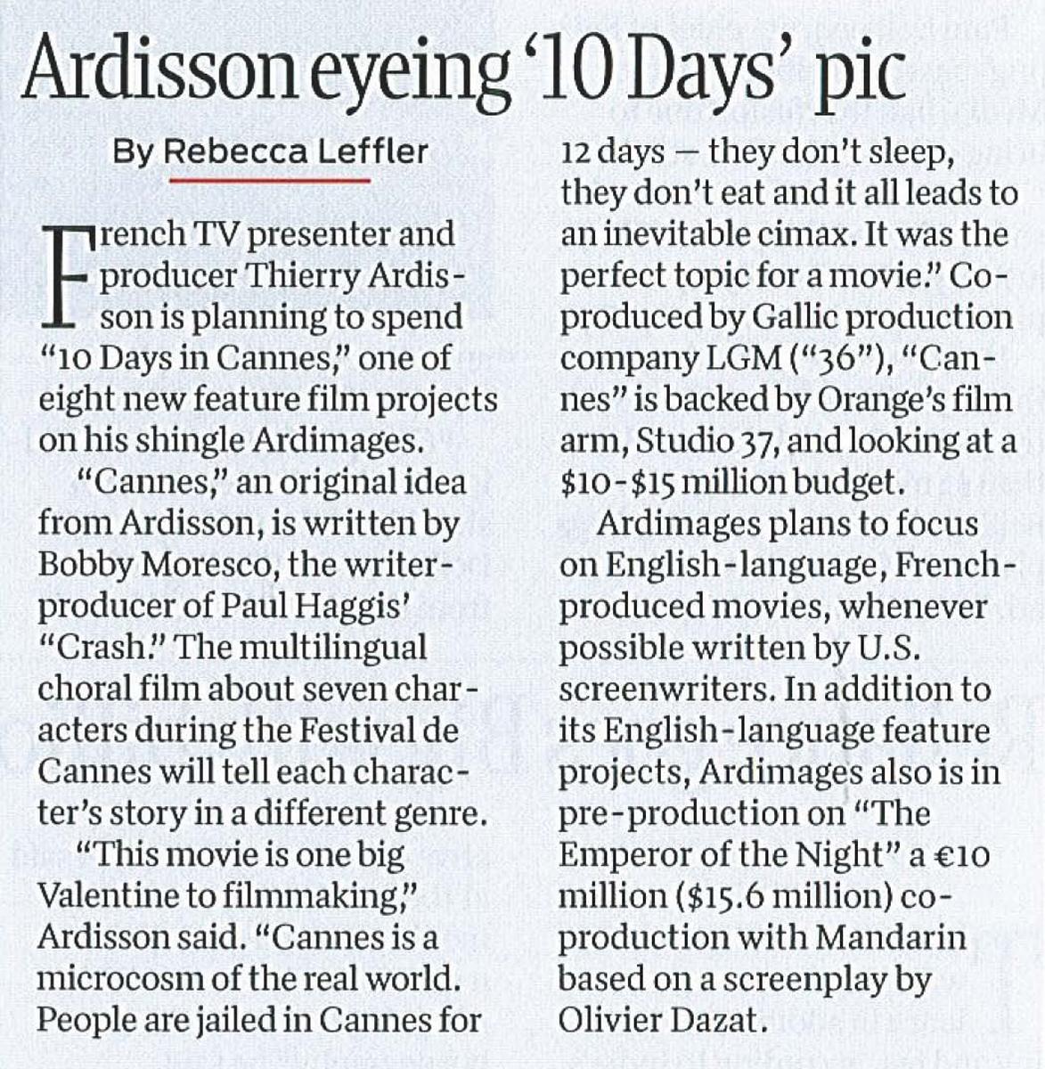 Ardisson eyeing « 10 days » pic, THR