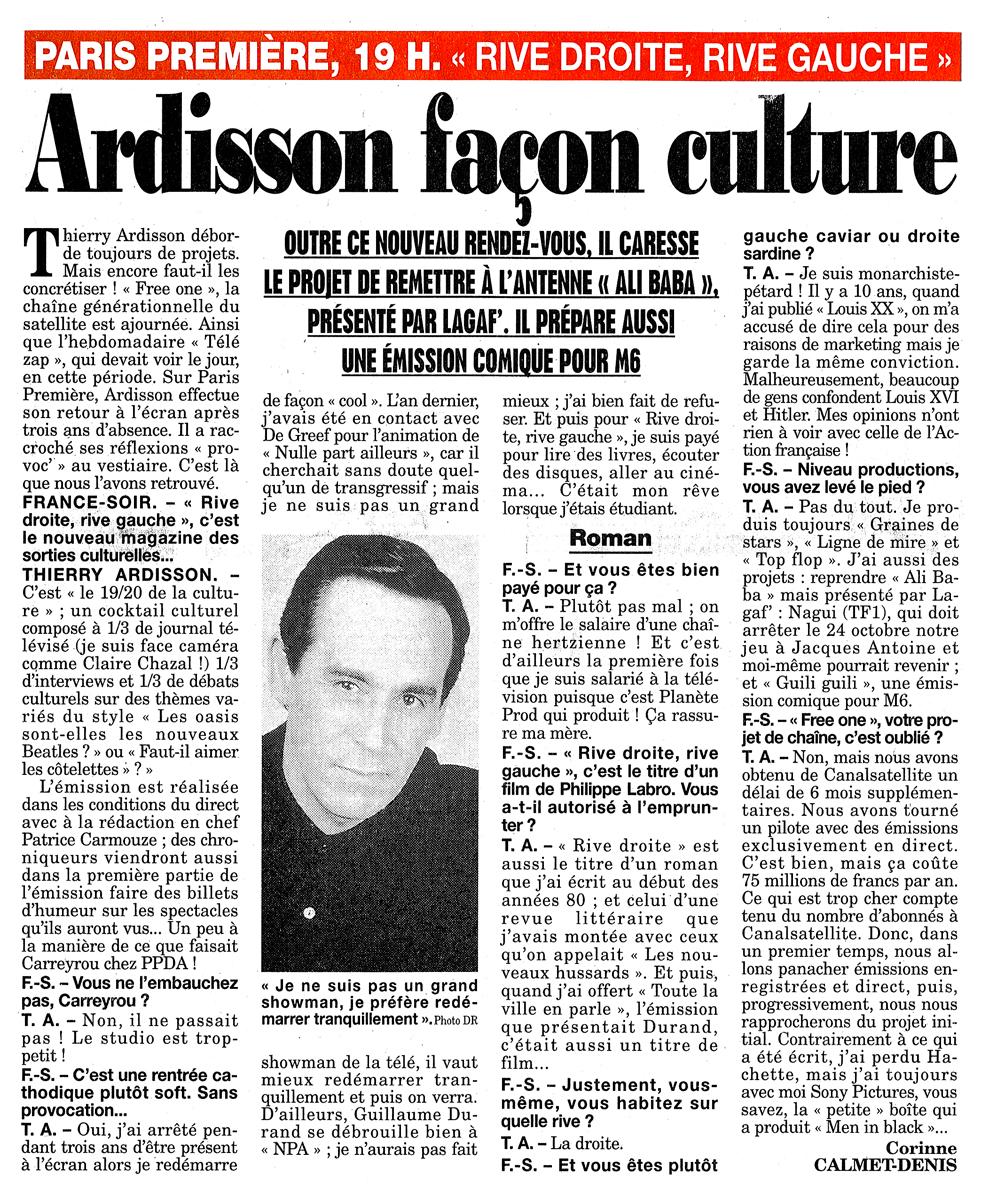 Ardisson façon culture, France Soir