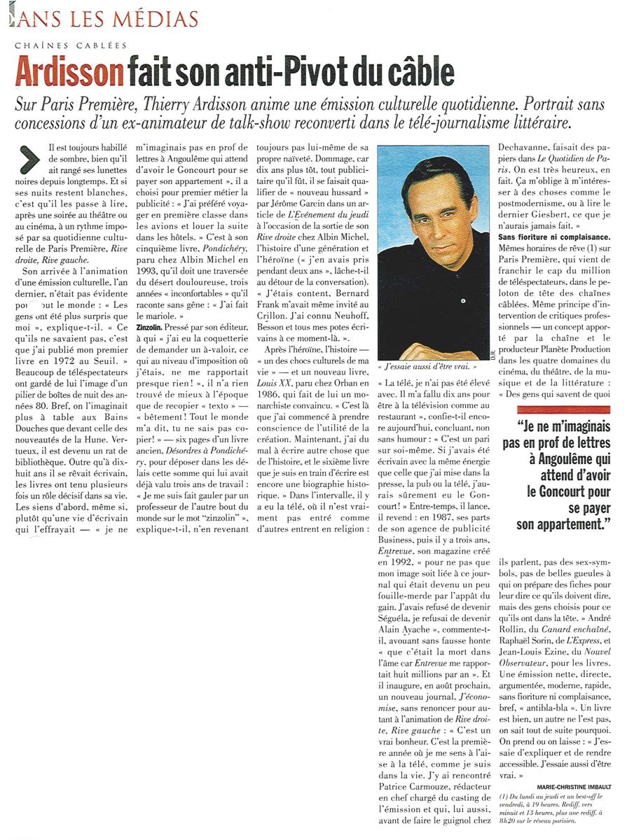 Ardisson fait son anti Pivot du câble, livre Hebdo
