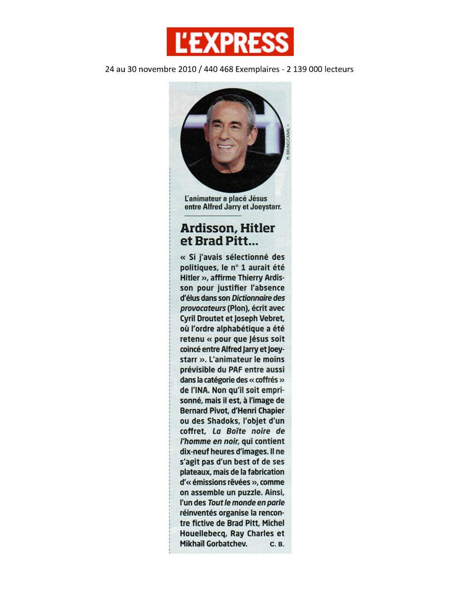 Ardisson, Hitler et Brad Pitt, L'Express
