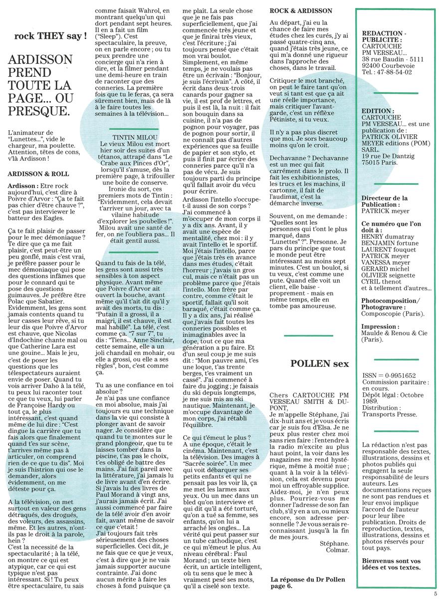 Ardisson prend toute la page ou presque, Cartouche