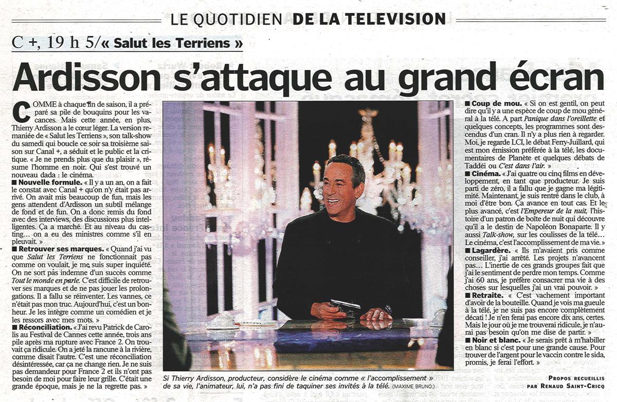 Ardisson s'attaque au grand écran, Aujourd'hui