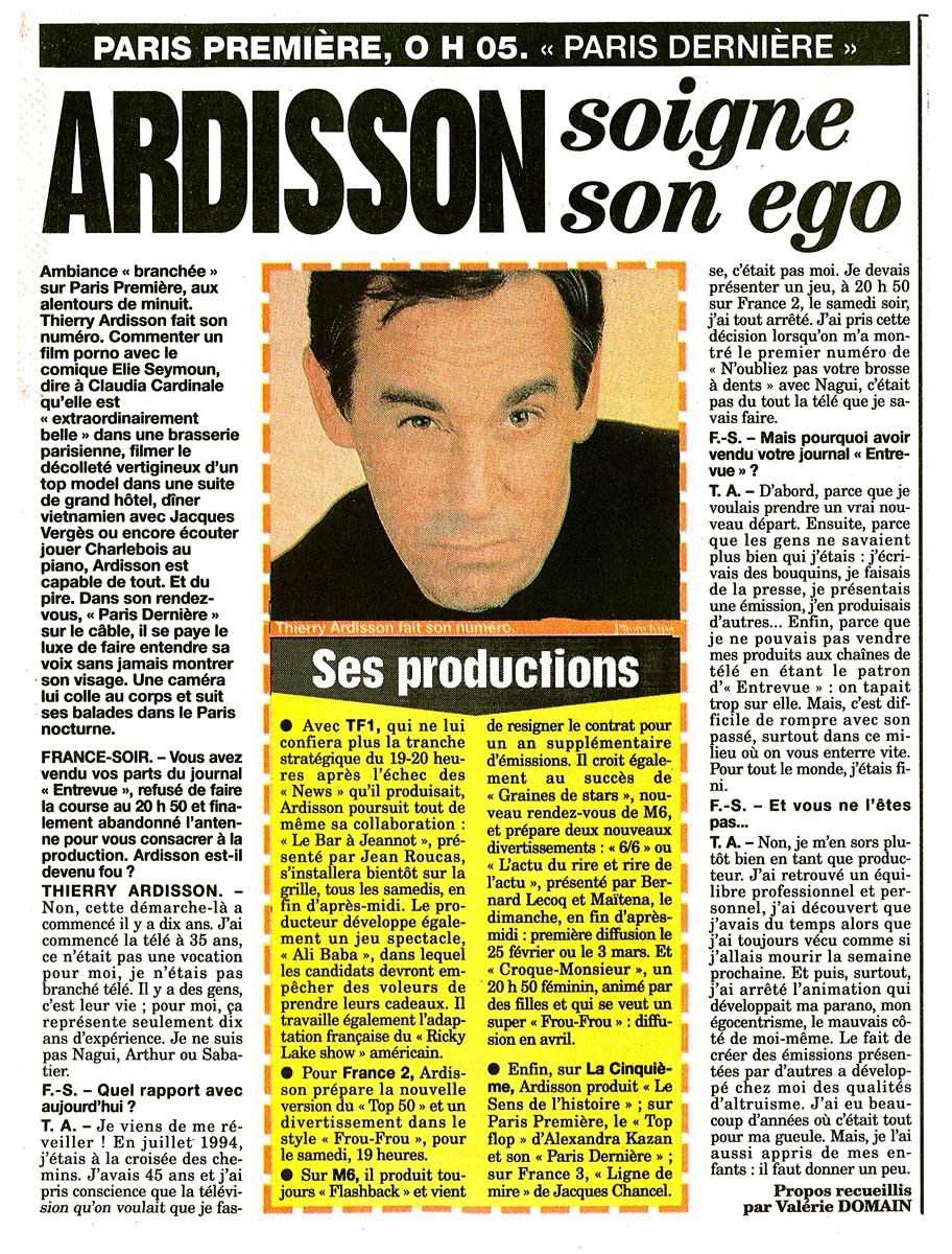 Ardisson soigne son ego, France Soir