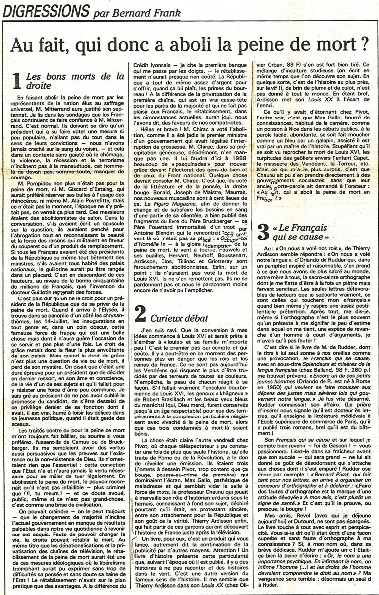 Au fait qui donc a aboli la peine de mort?, Le Monde