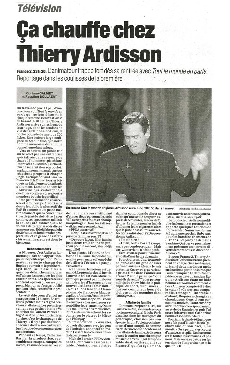 Ca chauffe chez Thierry Ardisson, France Soir