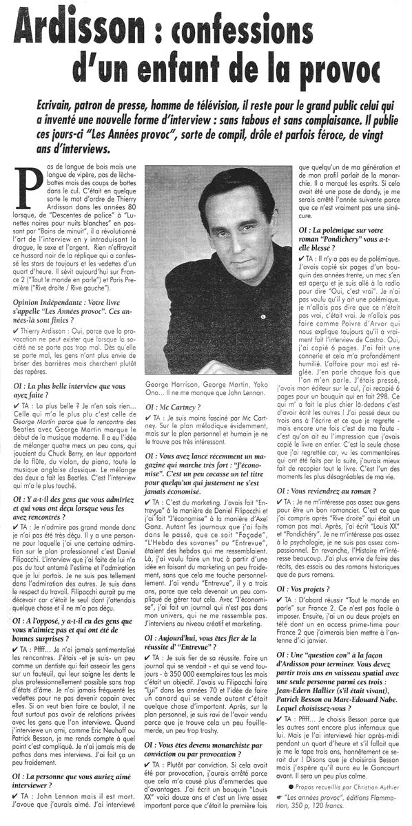 Confessions d'un enfant de la provoc, L'Opinion Indépendant du Sud Ouest