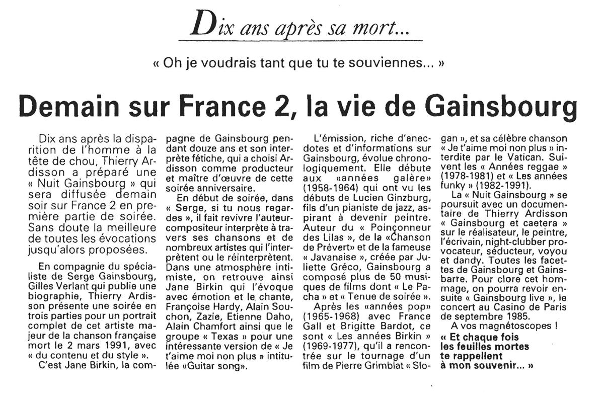 Demain sur France 2, la vie de Gainsbourg, La voix du nord