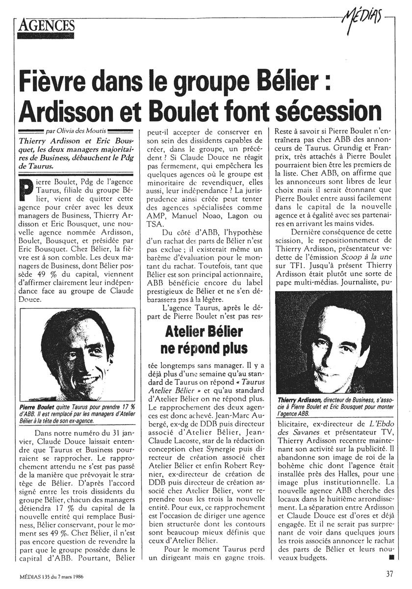 Fièvre dans le groupe bélier, Ardisson et Boulet font secession, Médias