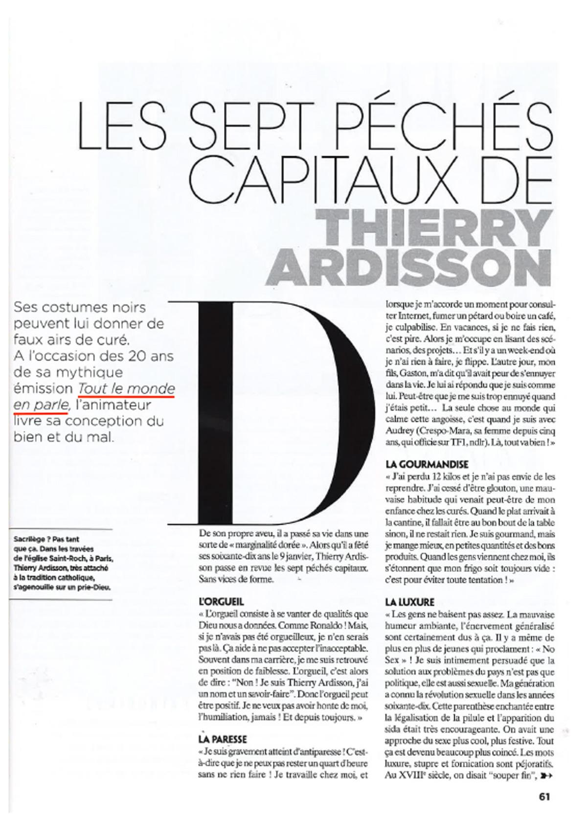 Gala « Les 7 péchés capitaux de Thierry Ardisson » / mai 2019