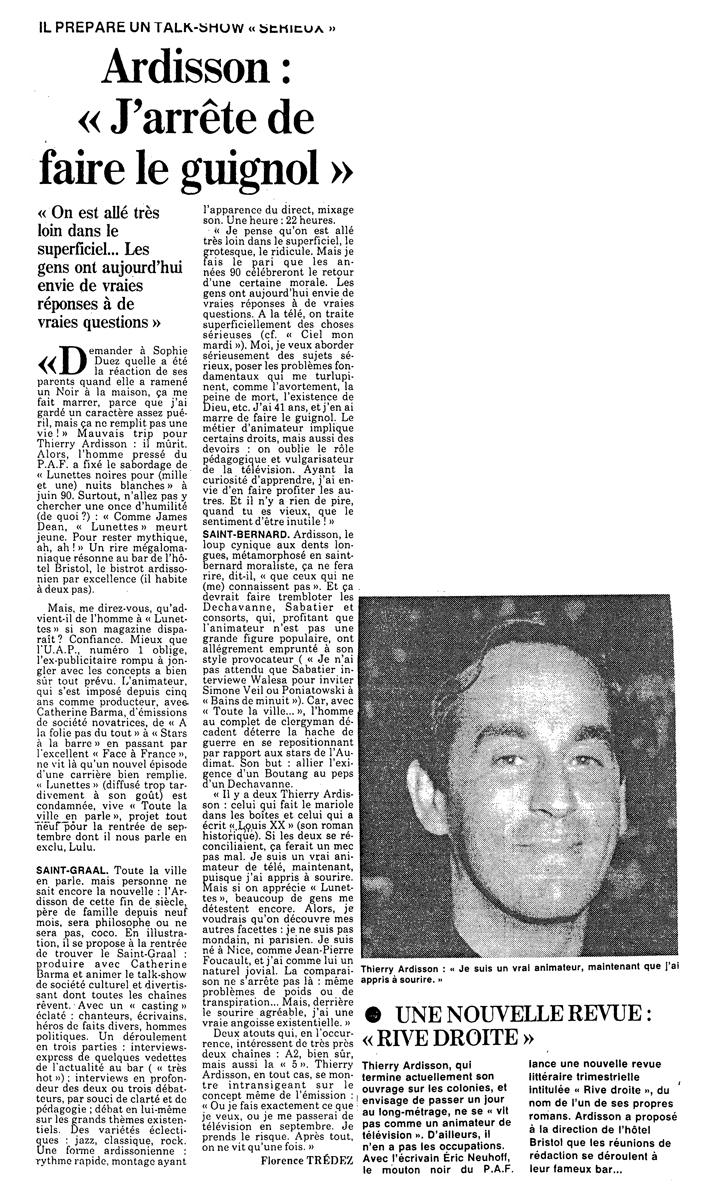 J'arrête de faire le guignol, France Soir