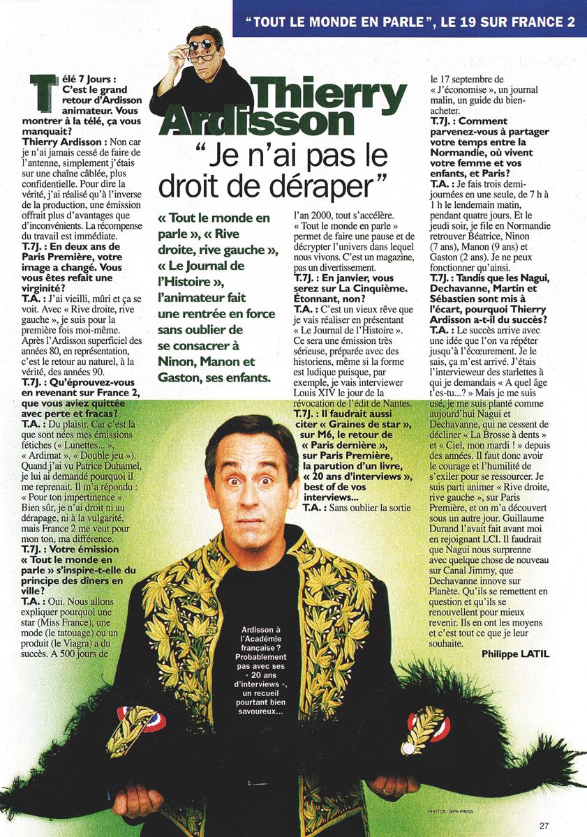 Je n'ai pas le droit de déraper, Télé 7 Jours
