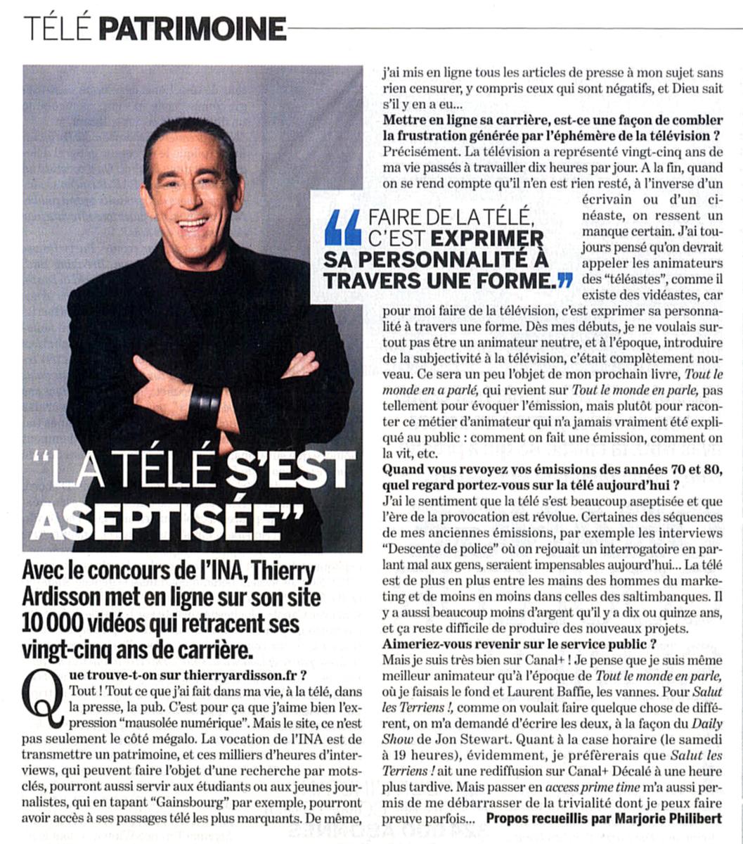 La télé s'est aseptisée, Les Inrockuptibles (Rubrique Télé Patrimoine)