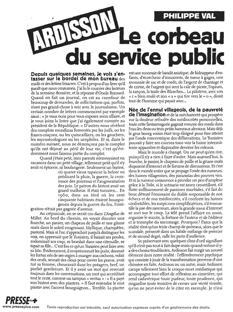 Le corbeau du service public, Charlie Hebdo