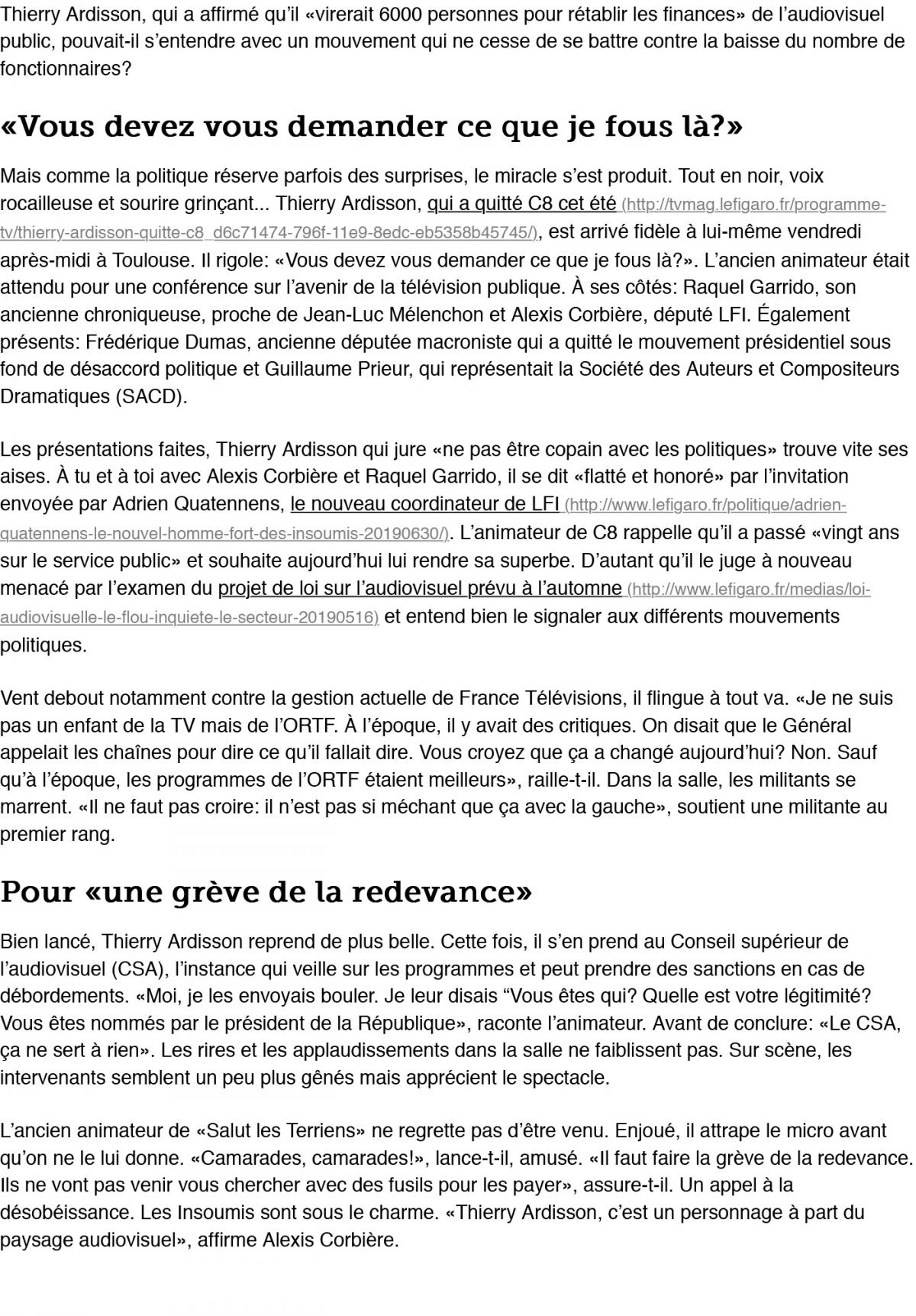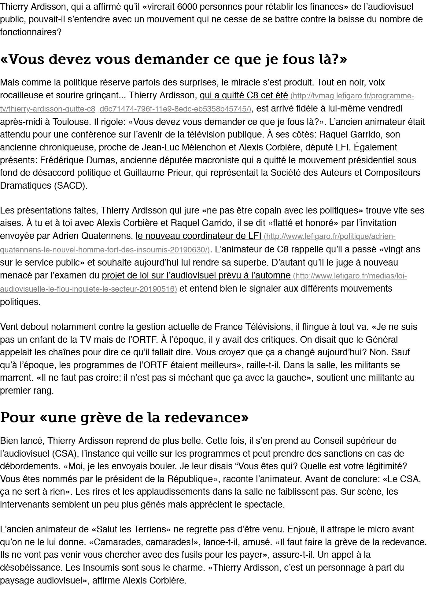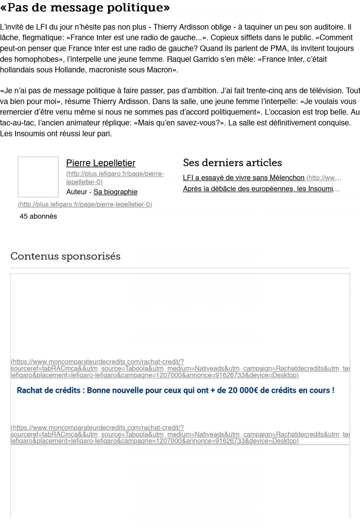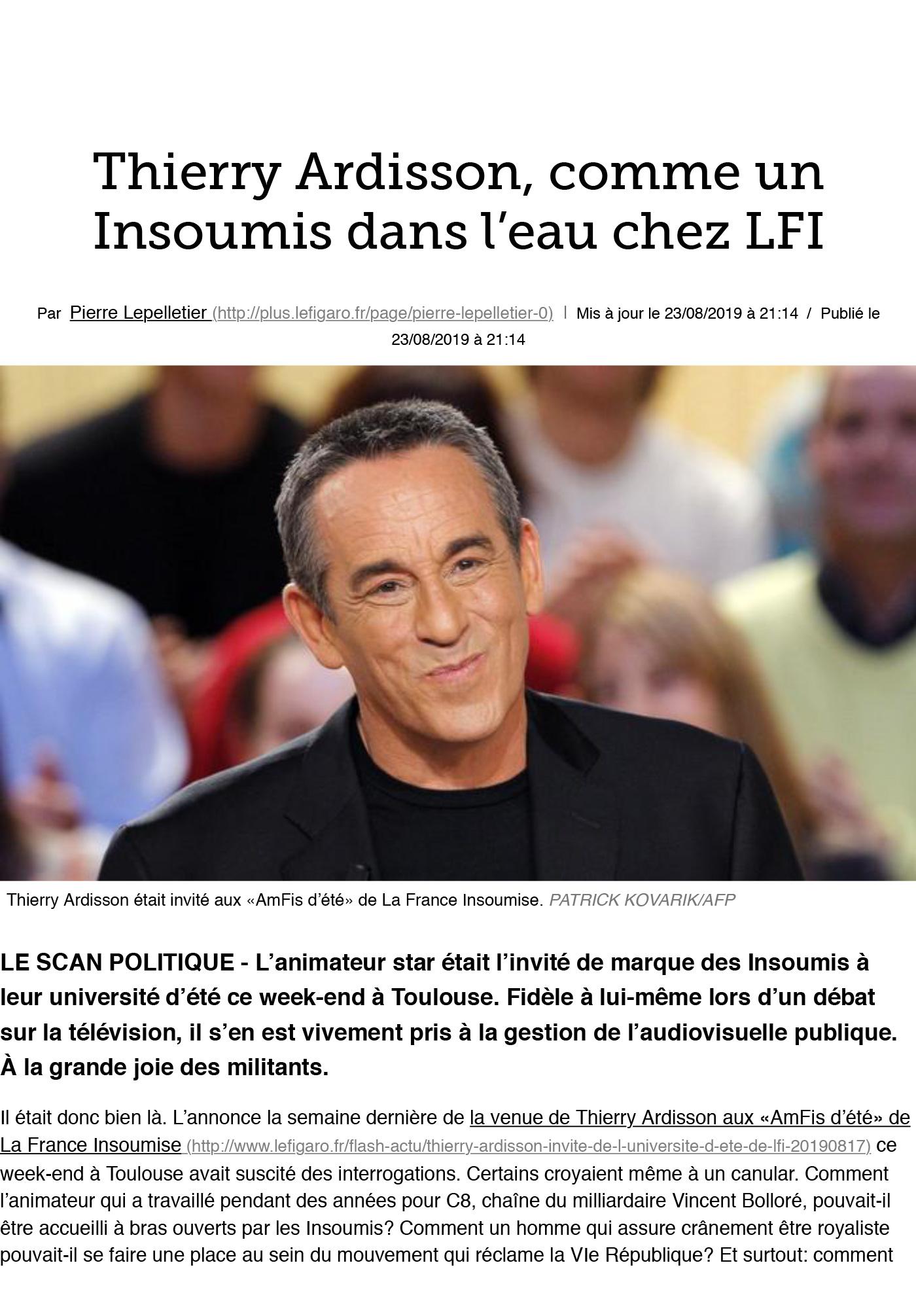 Le Figaro / 23-08-19 / « Thierry Ardisson, comme un insoumis dans l’eau chez LFI »