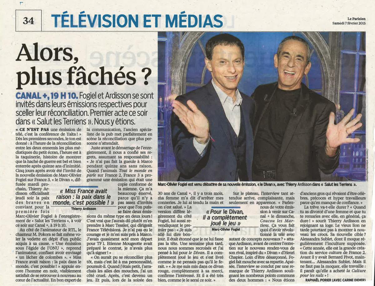 Le Parisien / Ardisson – Fogiel : « Alors, plus fâchés ? »