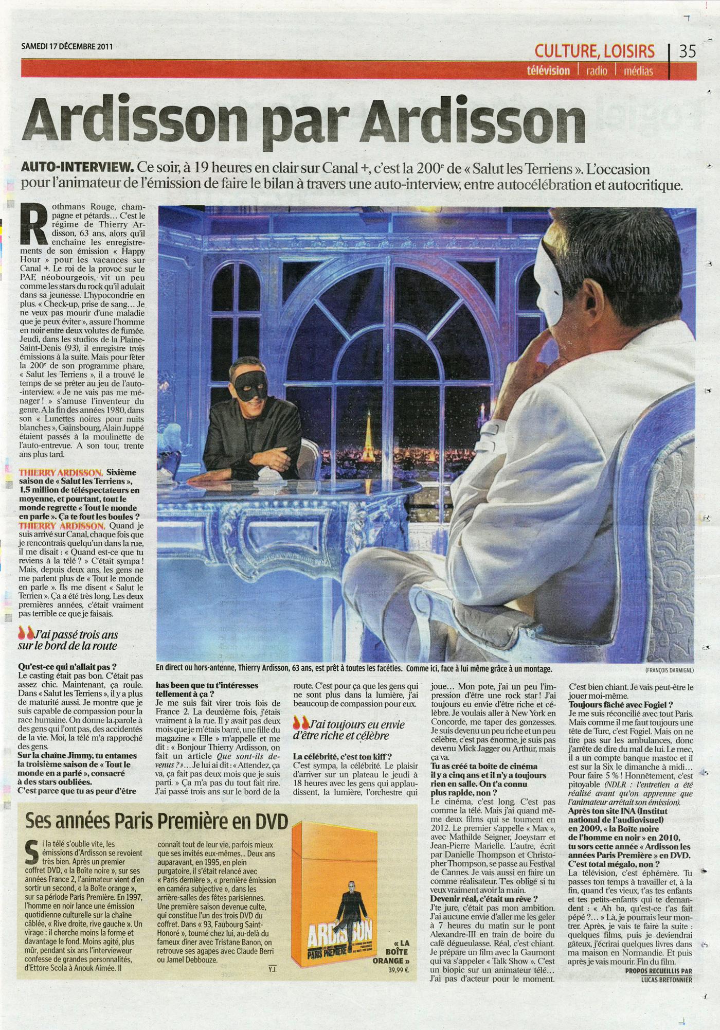 Le parisien, Ardisson par Ardisson, dec 2011
