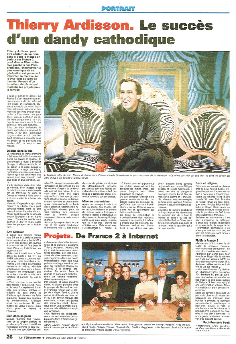 Le succès d'un dandy cathodique, Le Télégramme