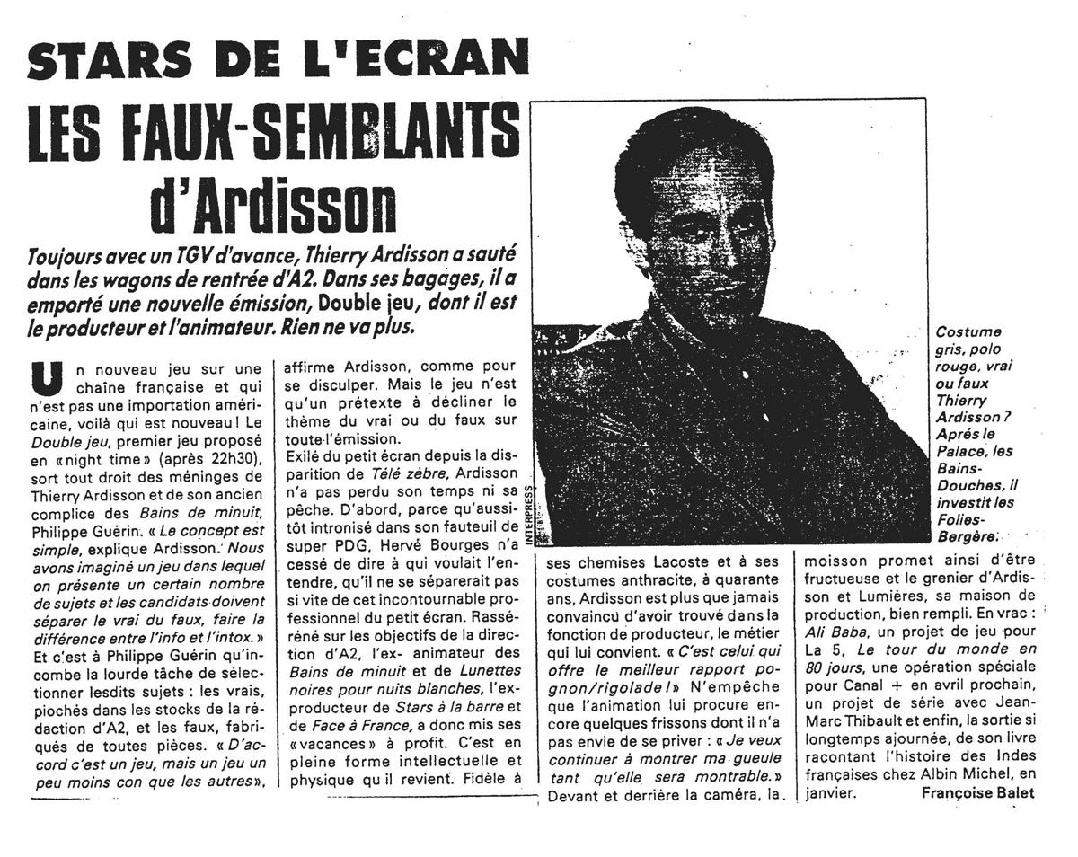Les faux semblants d'Ardisson, TV Hebdo
