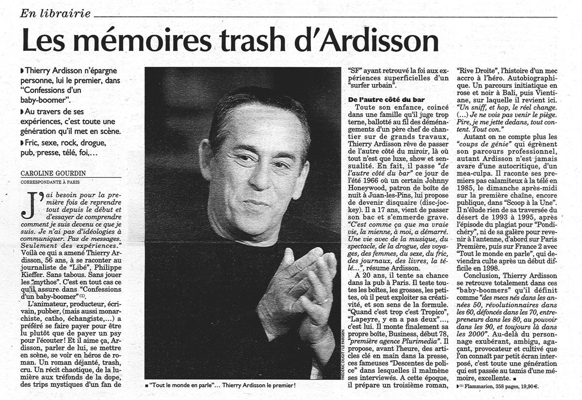 Les Mémoires Trash d'Ardisson, La Libre