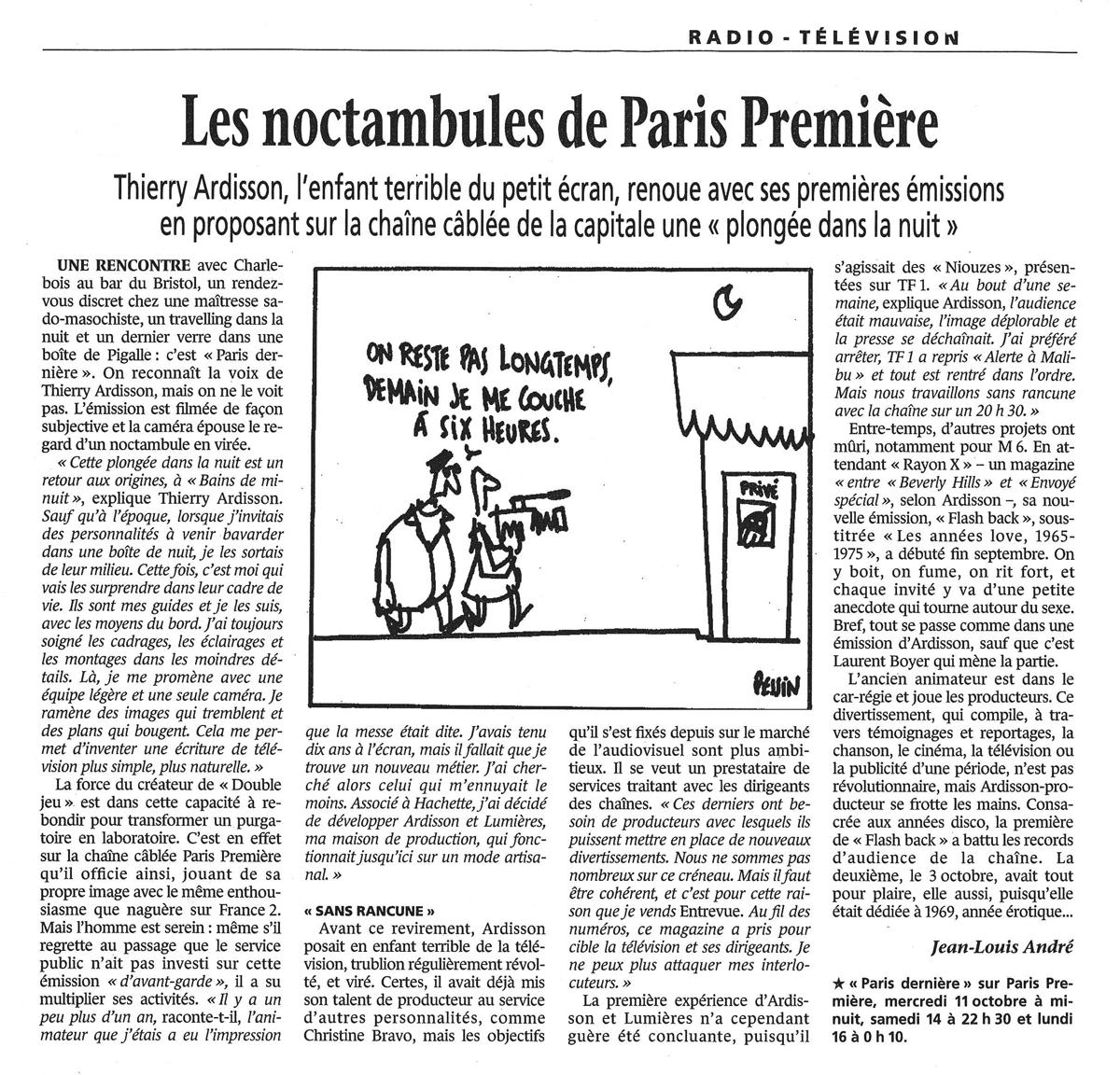 Les noctambules de Paris Première, Le Monde