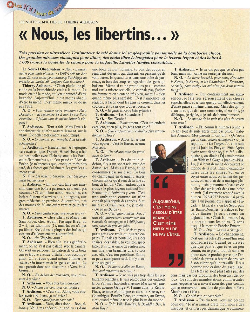 Les Nuits Blanches de TA, Nous les libertins, Le Nouvel Observateur