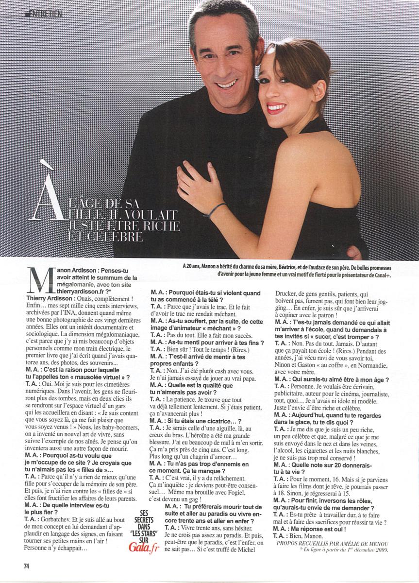 Manon & Thierry Ardisson, Confessions au nom du père, Gala