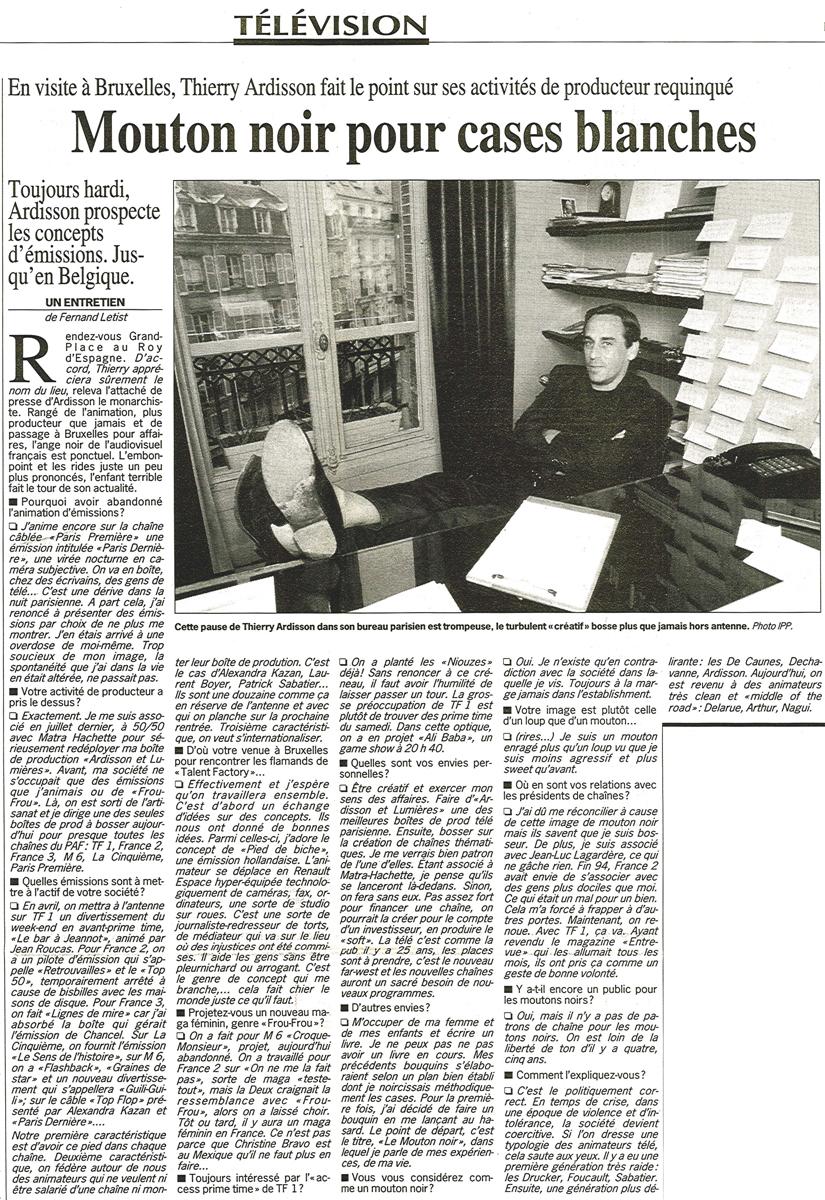 Mouton Noir pour cases blanches, Le Soir
