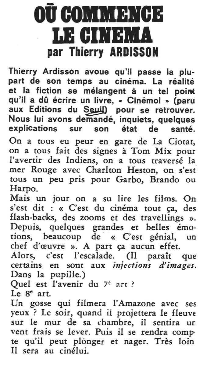 où commence le cinéma, Pariscope