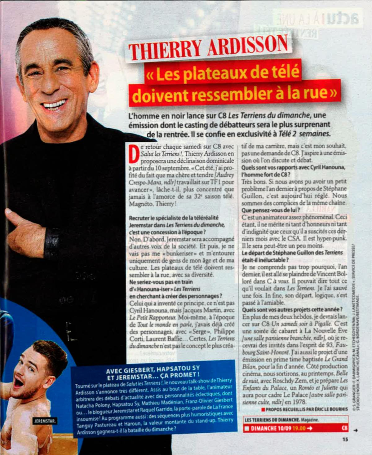 Télé 2 semaines - les plateaux de TV doivent ressembler à la rue