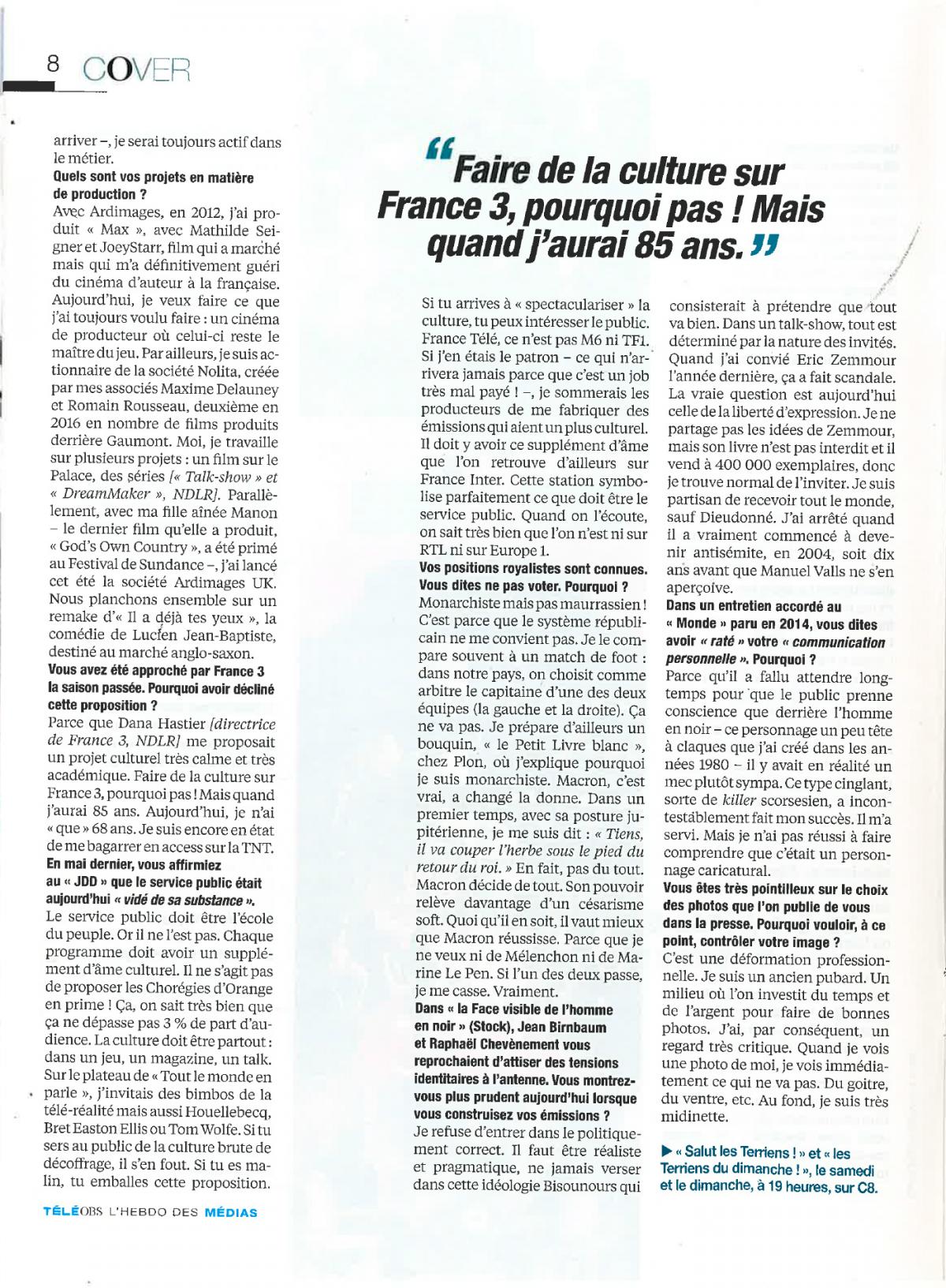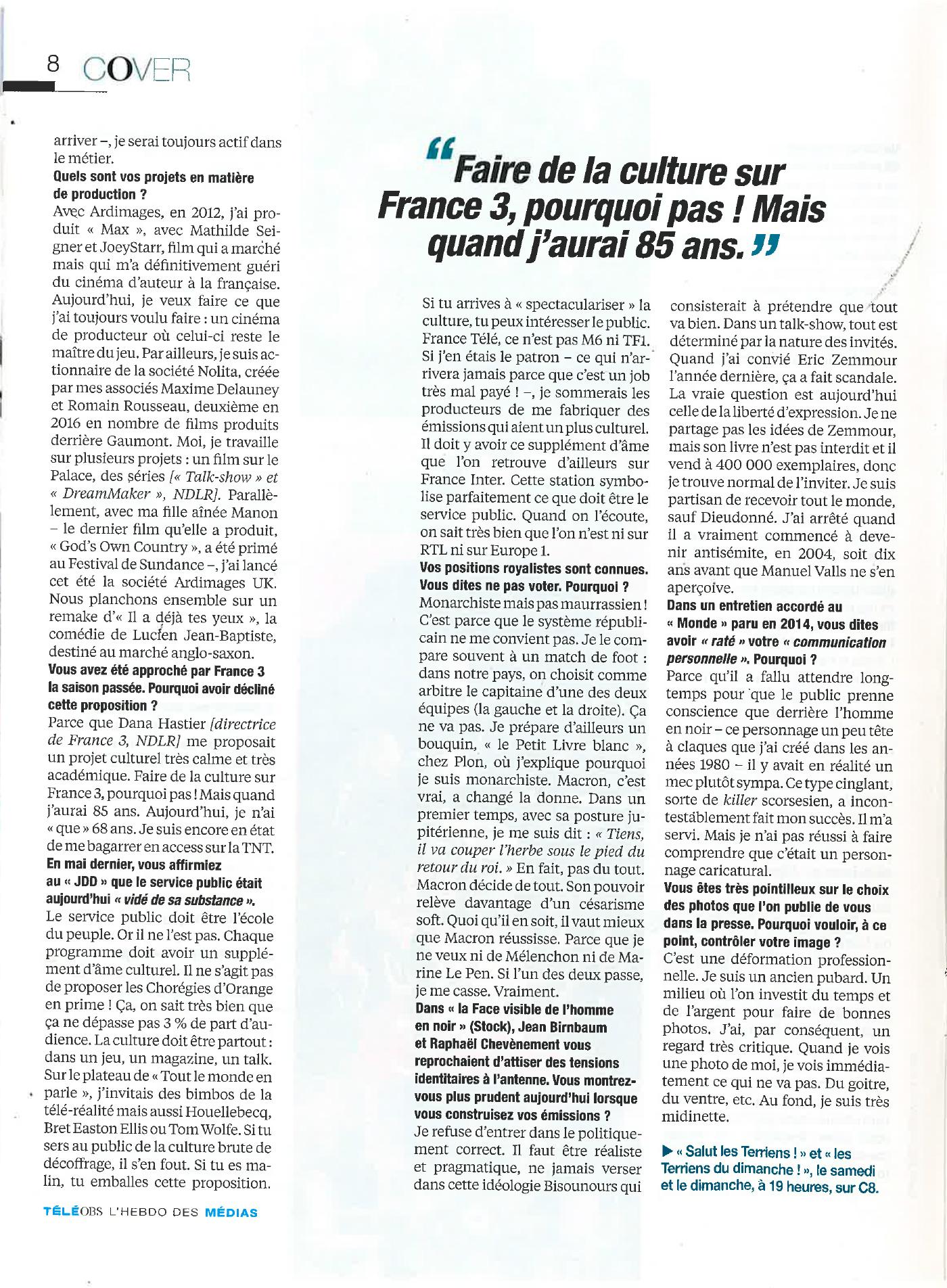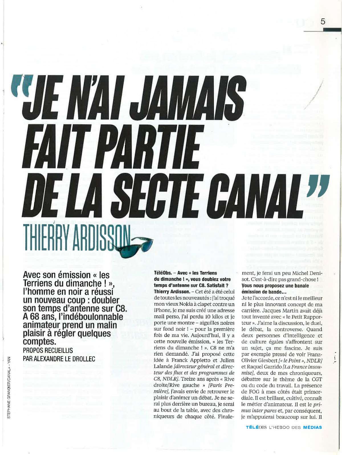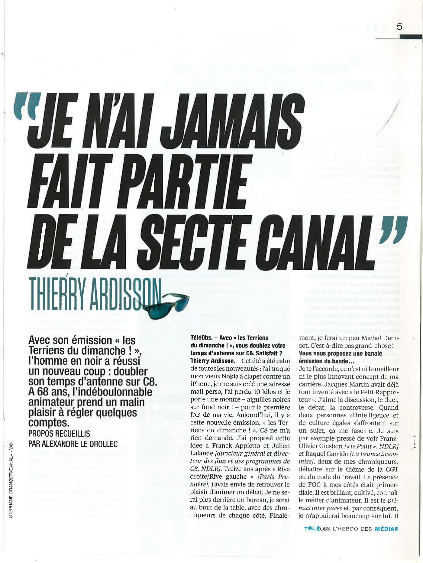 Télé obs - entretient avec l'insubmersible Thierry Ardisson