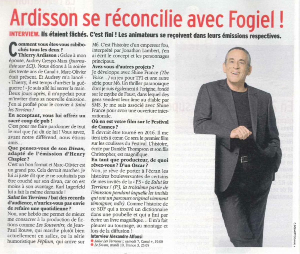 Télé7Jours / Ardisson se réconcilie avec Fogiel